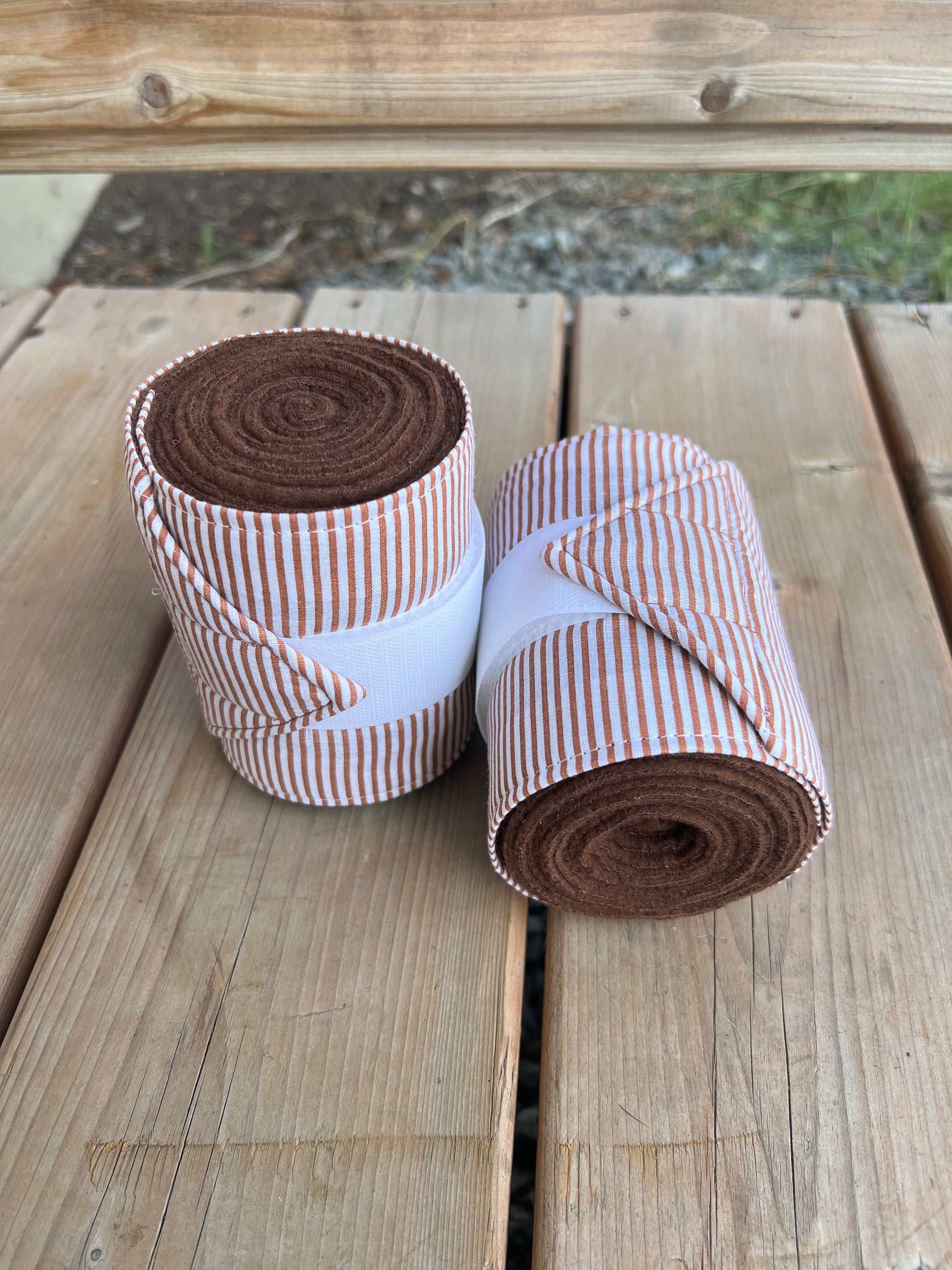 Set of 2 Horse Polo Wraps - Brown with Strips